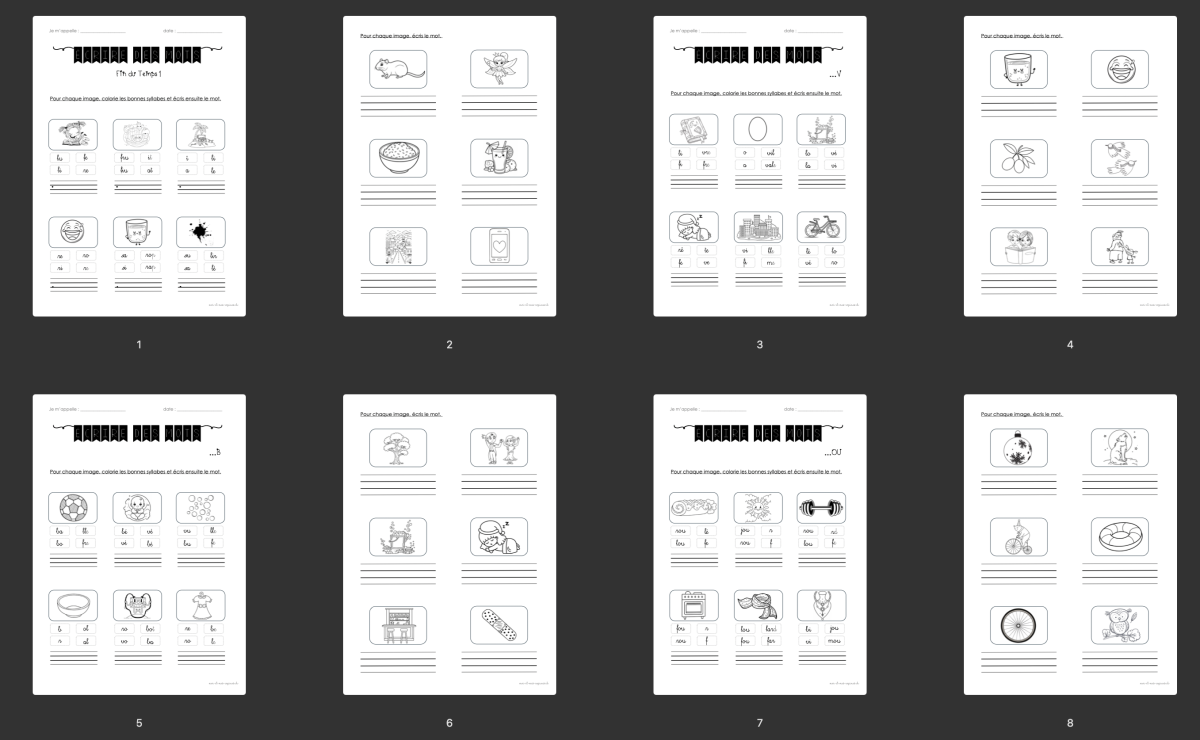 ❤ 22 pages pour travailler autour du mot et des phonèmes du Temps 1 et 2