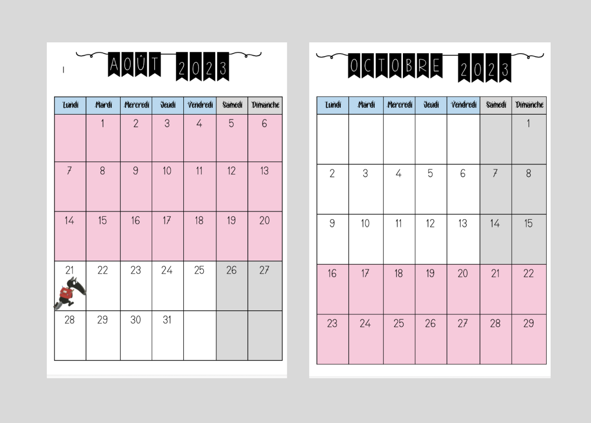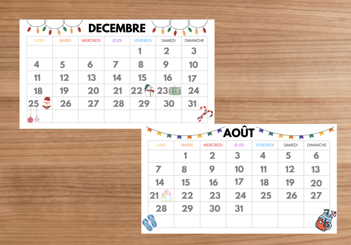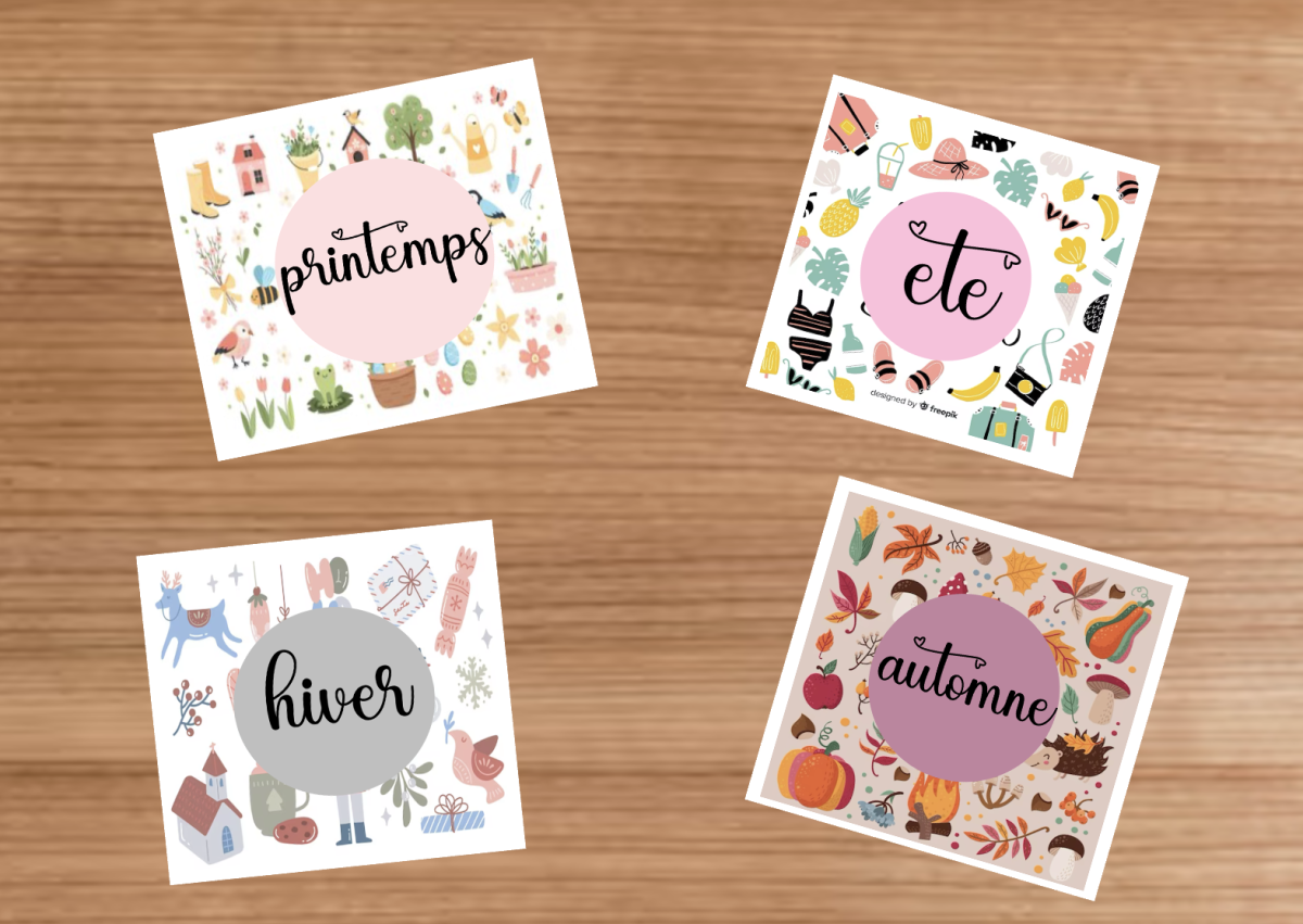 ⏰ Toutes les étiquettes sont réparties sur un tableau blanc et un élève est chargé de venir s’occuper de la date. Après avoir placé les bonnes étiquettes, il annonce la date du jour en citant : le jour de la semaine, la date, le mois, l’année et enfin la saison. Toute la classe répète.
