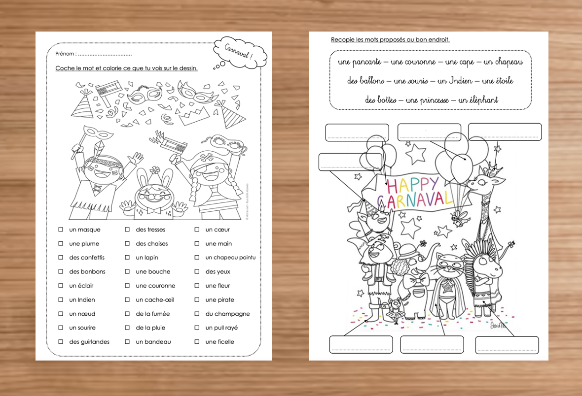 A choix : les déguisements des élèves pour Carnaval, les activités réalisées en classe en lien avec le thème, etc.