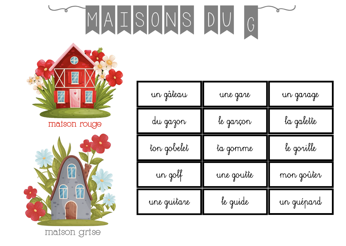 ❤ Repérer le son *G* et poser la carte dans la bonne maison.