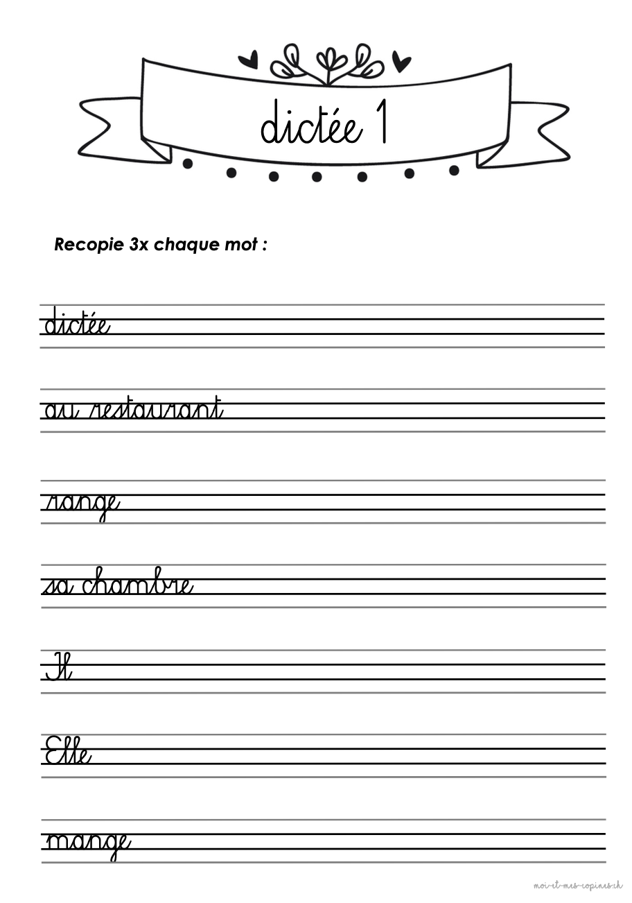 J'ai réalisé un fichier avec une vingtaine de dictée et à chaque fois, on révise un phonème différent ou une thématique (singulier / pluriel, verbe être, verbe avoir)