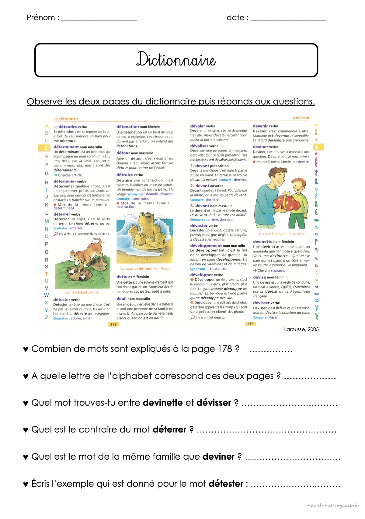 Déjà avant toute chose, nous avons pris les dictionnaires de la classe et nous les avons regardés, ouverts, fouillés, etc.