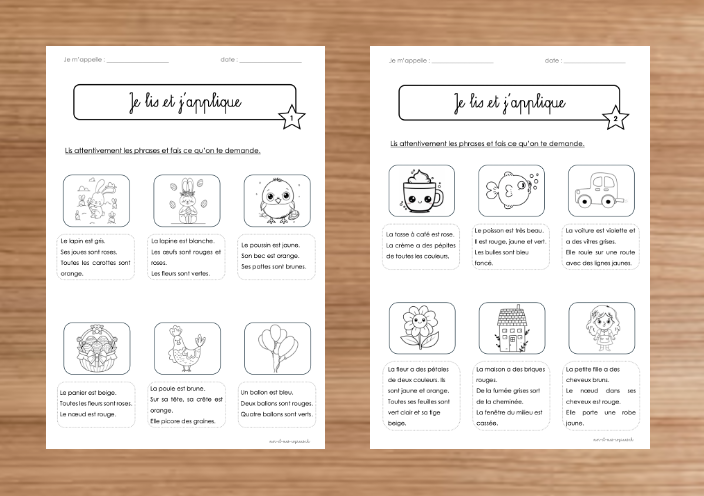 Ici vous trouverez à chaque fois, 5 fiches pour travailler la lecture, la compréhension, la réalisation de consignes, etc… et le tout sur différents thèmes !