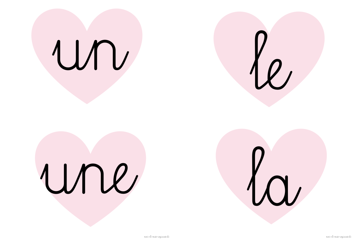 Pour ma part, je découpe les coeurs et je les mets au tableau. Les élèves ont dont ces mots de manière visible et constante.