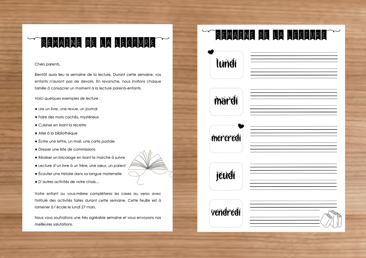 - Les élèves reçoivent un passeport de lecture qu'ils peuvent compléter durant toute la semaine.